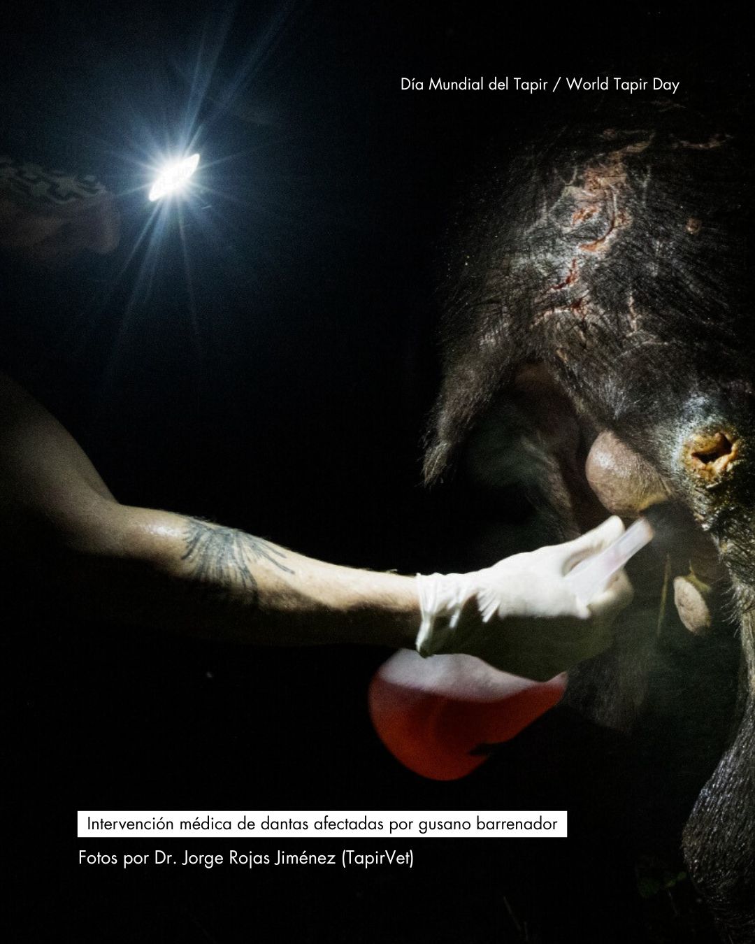 Images of medical intervention on tapirs affected by screwworm, courtesy of Dr. Jorge Rojas Jiménez, director of the Tapir Vet Project.